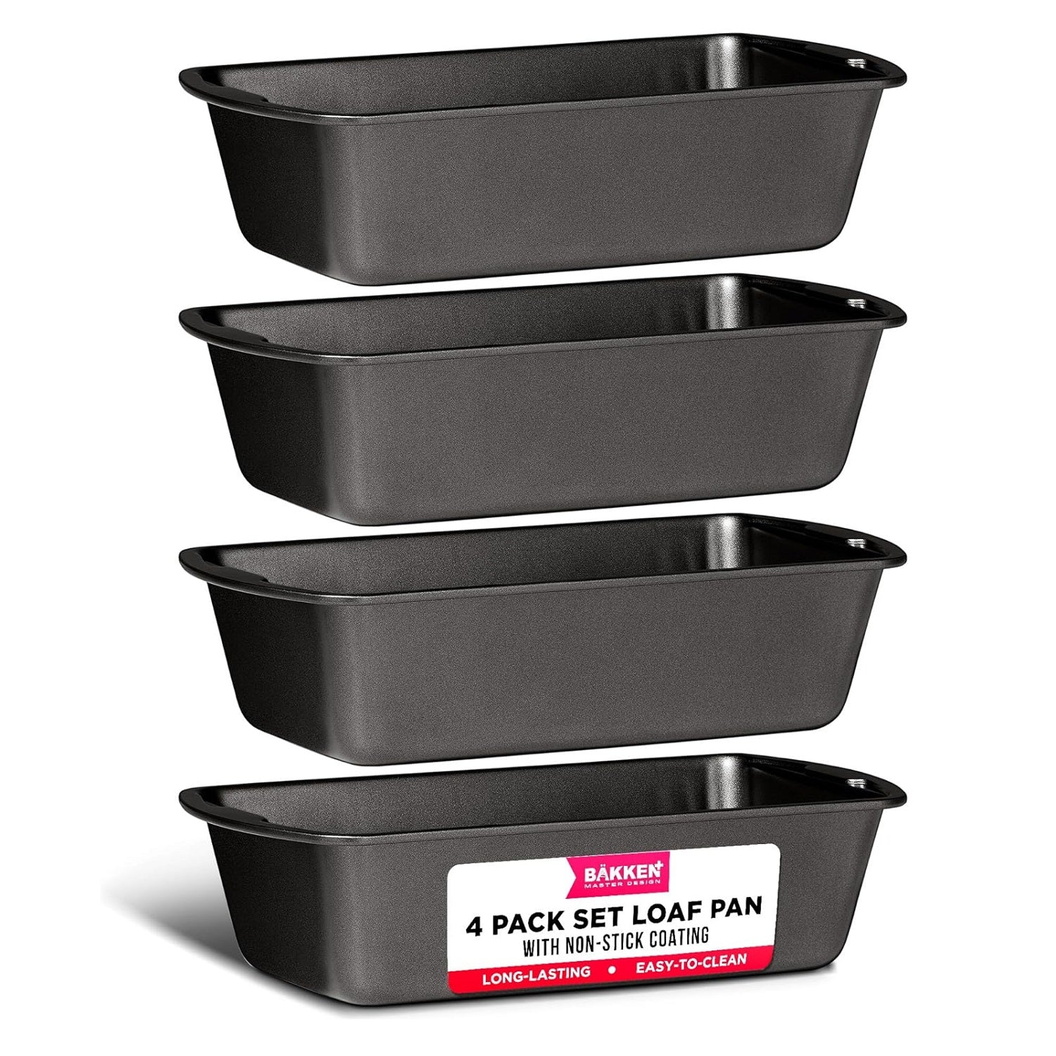 Elevate your home baking game with Bakken's 4-Piece Loaf Pan Set. These non-stick carbon steel bakeware loaf pans are designed to make baking bread and cakes a joy, delivering consistent, professional-grade results every time. Featuring a deluxe nonstick gray coating both inside and outside, this premium coating ensures that your baked creations release effortlessly and make cleanup a breeze. Say goodbye to stuck-on messes and hello to perfectly shaped loaves and cakes. Crafted from flexible and nonstick carbon steel, our bakeware set meets the high standards of professional kitchens. Achieve bakery-quality results in the comfort of your own home, thanks to the even heat distribution when cooking up to 450 ° Fahrenheit (230° Celsius) and the reliable performance of our pans. The stackable wide tray pan design not only saves precious cabinet space but also keeps your kitchen organized and ready for your next baking session. Whether you're baking classic loaves or experimenting with a new cake recipe, these pans offer versatility for all your baking needs. Our 4 loaf pan set includes 4 - large loaf pan measuring 11.02 x 5.91 x 2.76 inches. BUY NOW and get ready to create flawless bread and cakes that will impress your family and friends.