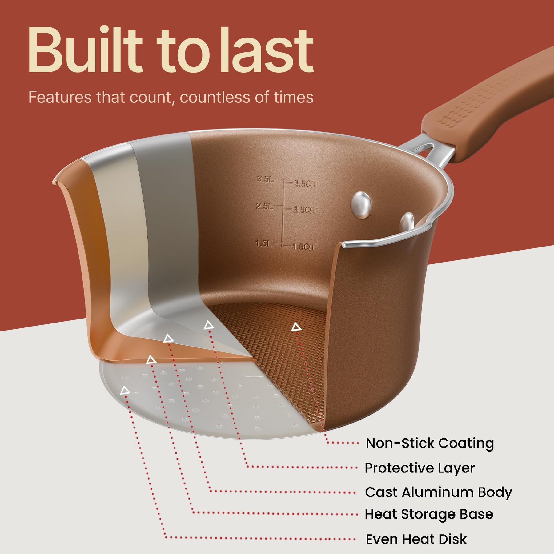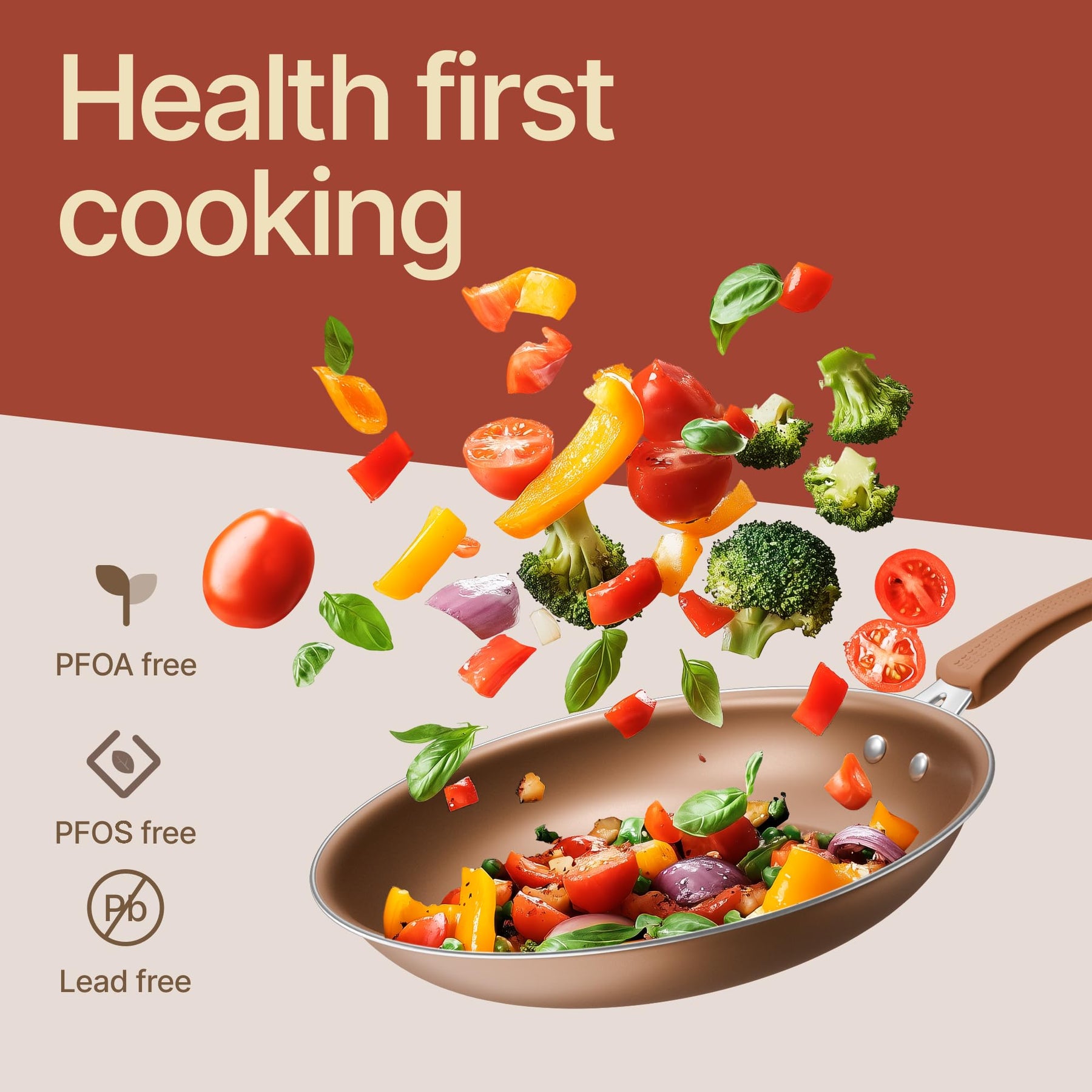 Comfort meets safety with cool-touch, ergonomic handles that provide a secure and comfortable grip while transferring from stovetop to oven. The stain-resistant interior maintains its clean look over time, while the durable construction resists warping for reliable everyday use.
