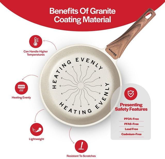 With the Bakken-Swiss Essential 14-Piece Cookware Collection, we had the goal to provide you with the essentials you need without compromising on our outstanding standards. We also designed this set for durability and convenience–the robust tempered glass lids and the cool-touch handles provide safety. Tailored for cooks of every level, this set will match all your expectations. The heat distribution is one of this set’s strengths. It ensures that every dish, slow-simmered stew or rapid sear, is cooked to perfection. The transparent, tempered glass lids help you check your food so you do not need to uncover it, which sometimes causes the ingredients to lose moisture or flavor. We wanted to make the washing part quick and easy too–our products are stain-resistant and are made of easy-to-clean surfaces. At Bakken-Swiss, we're committed to making your kitchen journey enjoyable and safe. Discover the difference–secure your set in your cart now!