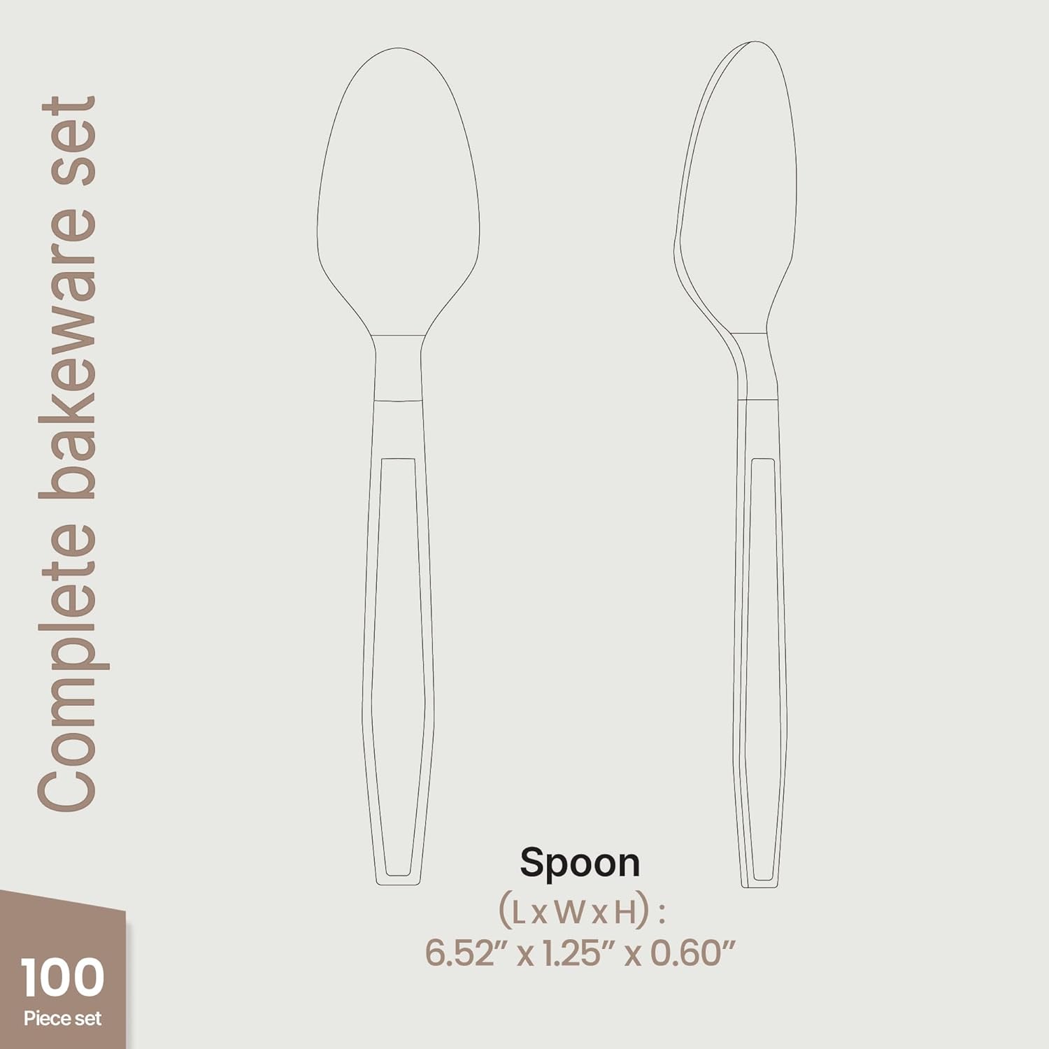 Bakken Disposable Cutlery Set 100 Pieces Spoons, Heavy Duty Plastic Silverware