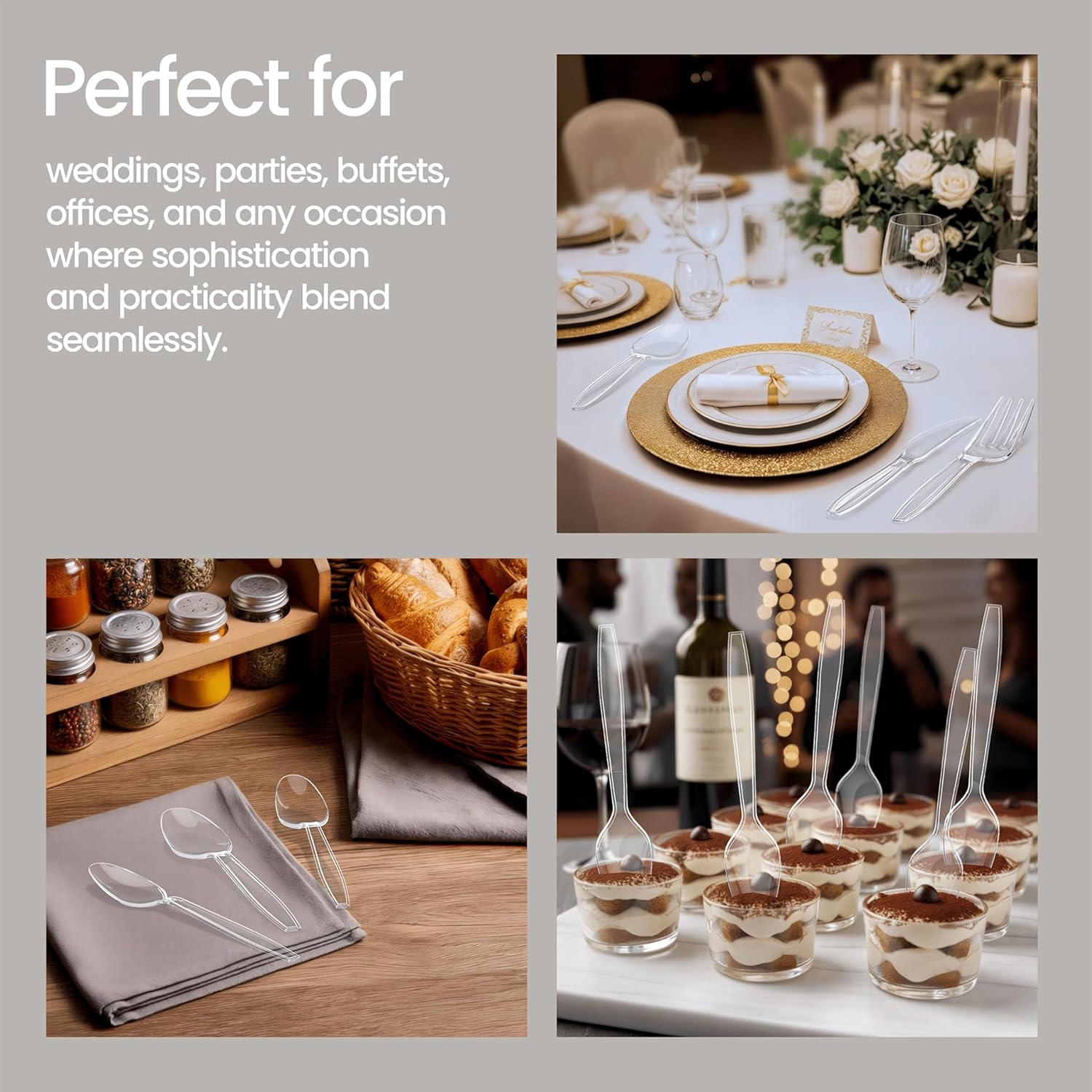 - DISPOSABLE CONVENIENCE – Hosting is a breeze with plastic silverware utensils that are time-saving and disposable, yet durable enough to wash and reuse when you want extra value.