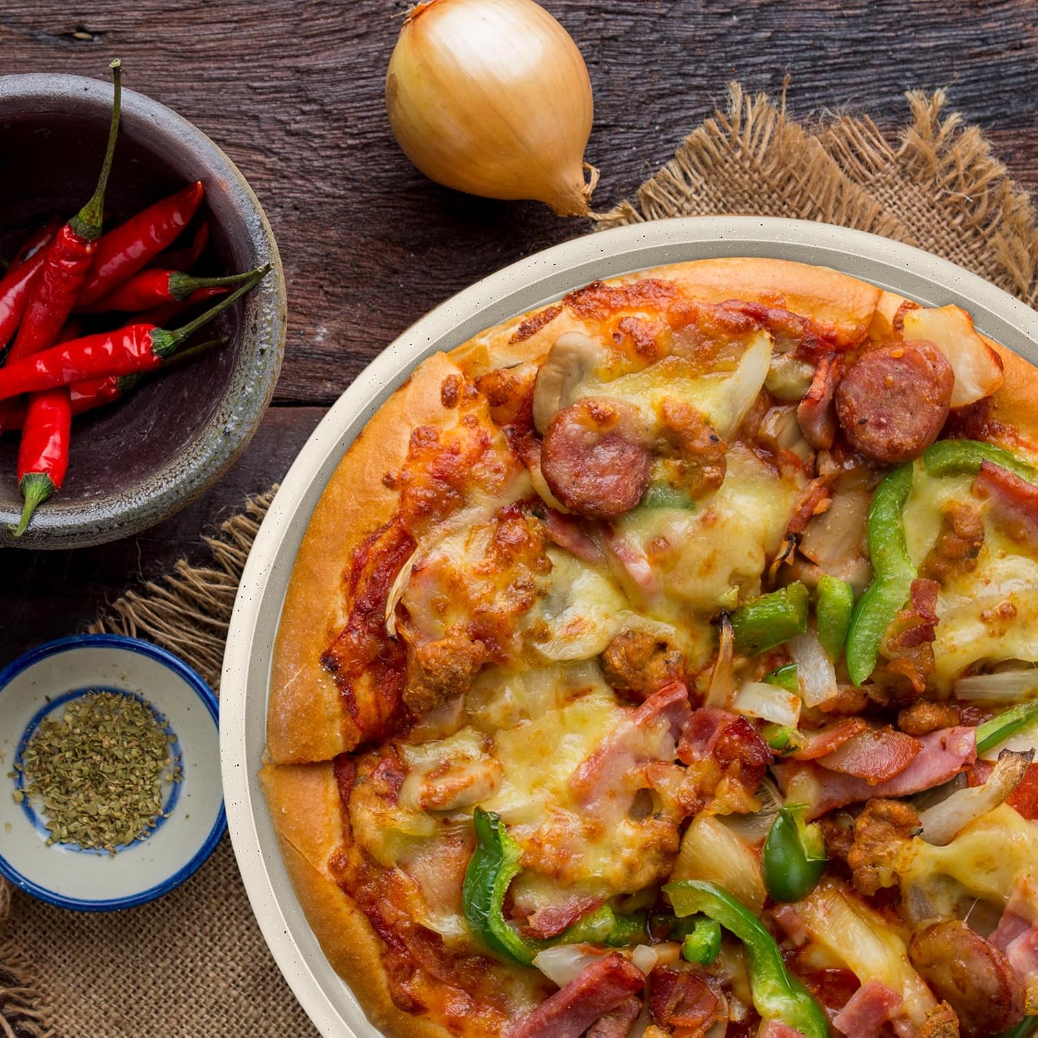 Upgrade your home baking with the Bakken Pizza Baking Pan, designed for both novice and experienced bakers. This round, perforated carbon steel pan features an oversized silicone handle for easy maneuvering, and its durable non-stick coating ensures that your pizzas and cookies slide off effortlessly. Say goodbye to the frustration of sticky pans and hello to perfect baking results every time. Made from high-quality carbon steel with a 0.4mm thickness, this baking pan is built to last. The strong construction guarantees even heat distribution, so your baked goods come out evenly cooked and delicious. The strategically placed perforated holes in the pan allow air to circulate freely, giving your pizza a professional-quality crispy crust that’s sure to impress. Whether you’re baking pizza, cookies, or other treats, this pan delivers consistent, reliable results you can count on. The Bakken Pizza Baking Pan is designed to withstand high temperatures up to 450°F (230°C), making it versatile for all your baking needs. It’s also dishwasher safe for easy cleanup, and free from harmful chemicals like PFOA, PFOS, and PTFE, ensuring safe and healthy baking. With a size of 13'' x 13'' x 0.78'' inches, this pan fits perfectly in standard ovens, making it a practical and essential addition to any kitchen. Enjoy baking like a pro with the Bakken Pizza Baking Pan!