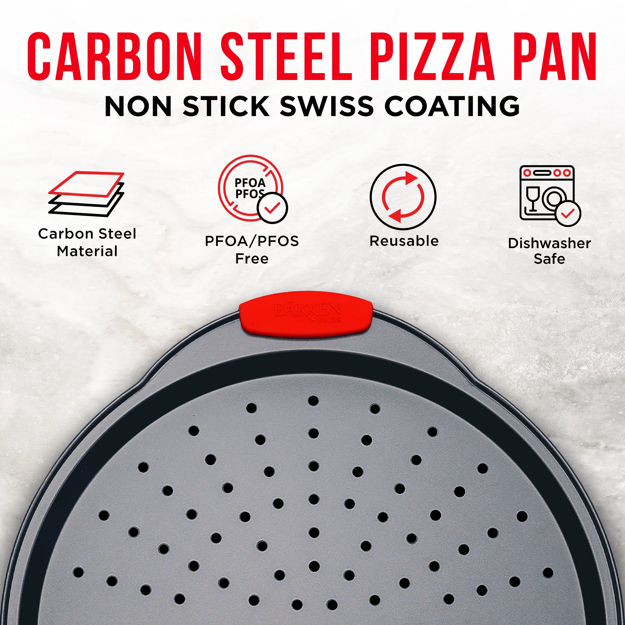 Pizza Tray Carbon Steel Pizza Pan with Holes and Non-Stick Coating – PFOA PFOS and PTFE Free by Bakken