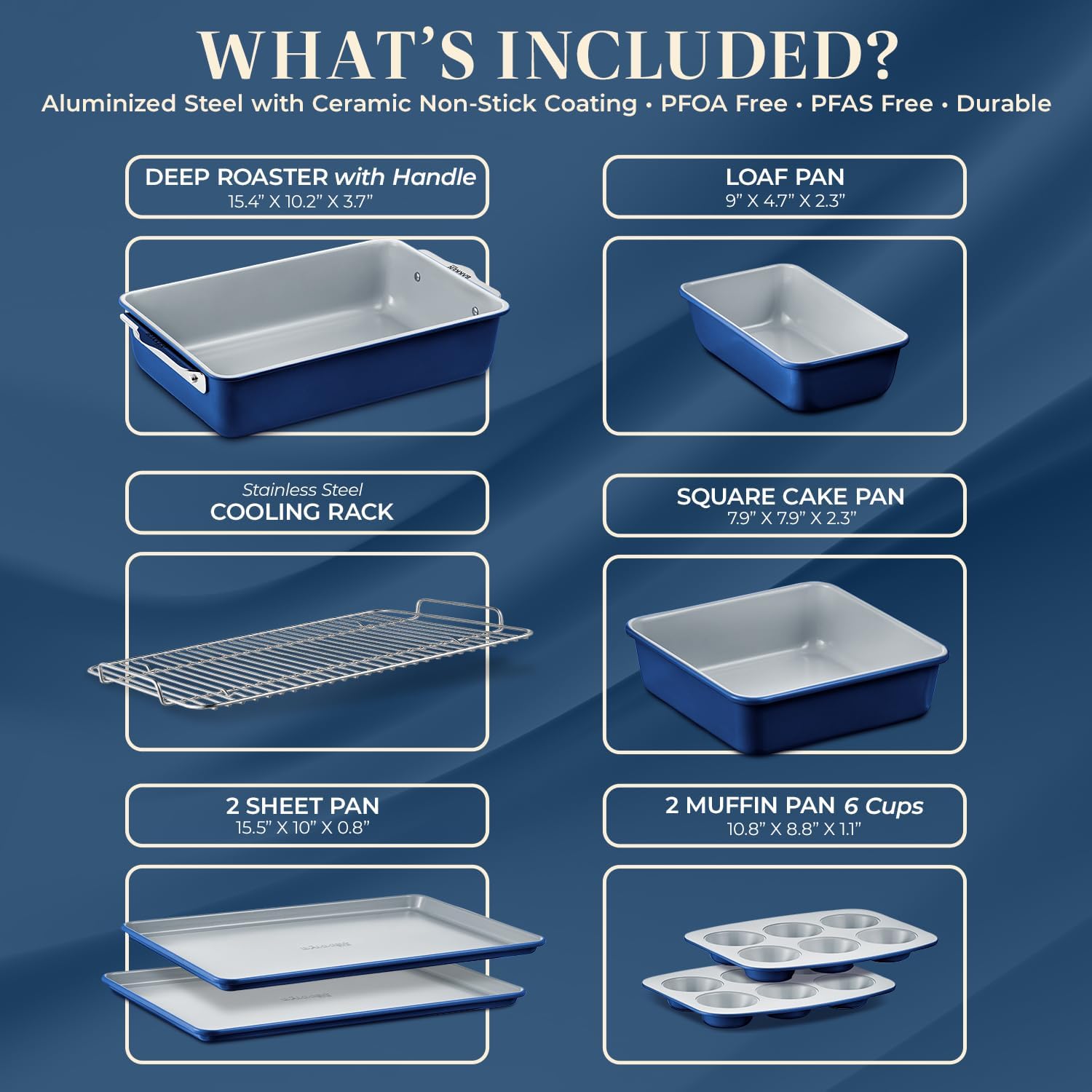Bakken 8-Piece Stackable Bakeware Set - Ceramic Non-Stick Coating, Baking Sheets, Assorted Baking Pans, PTFE, PFOA & PFOS Free - Healthy Baking, Ergonomic Handles, Cooling Rack, Non-Toxic, Oven-Safe