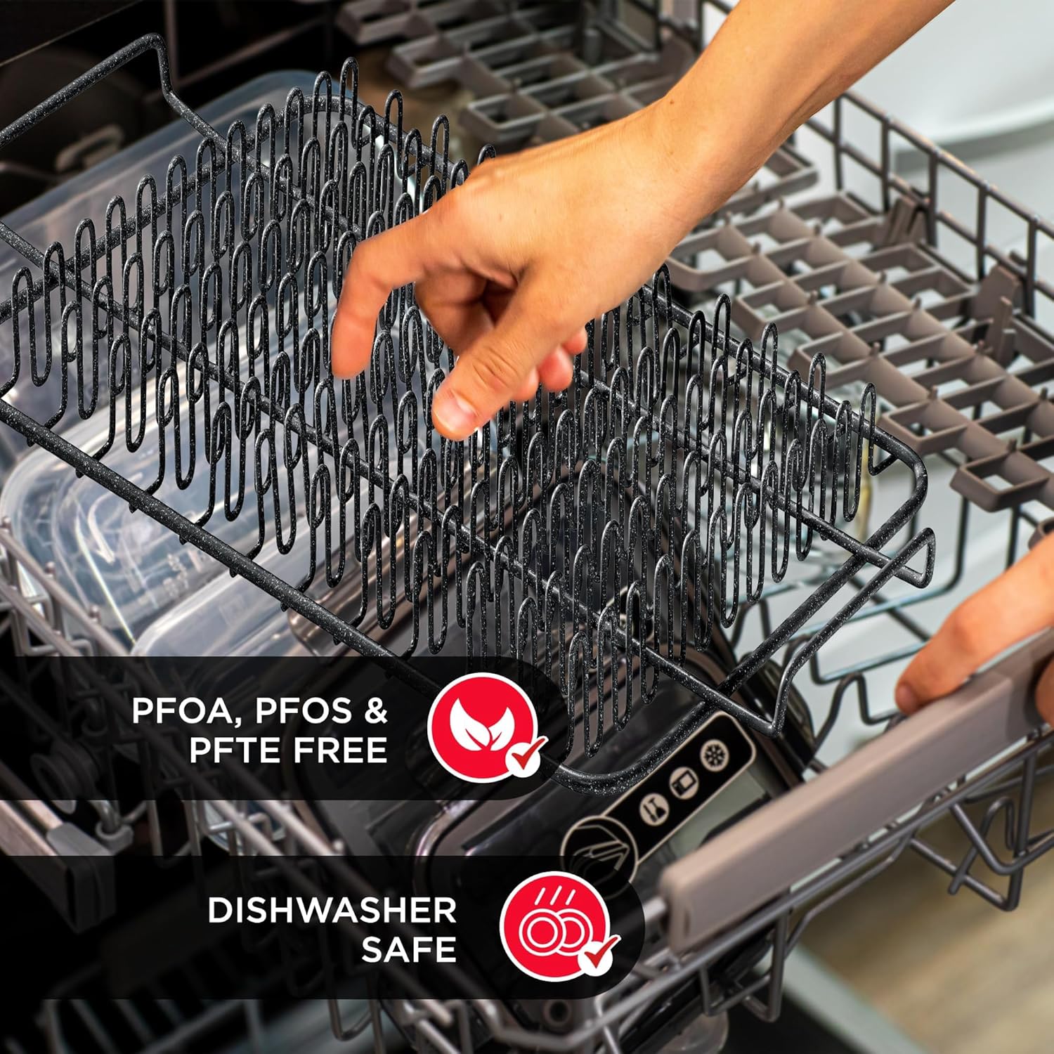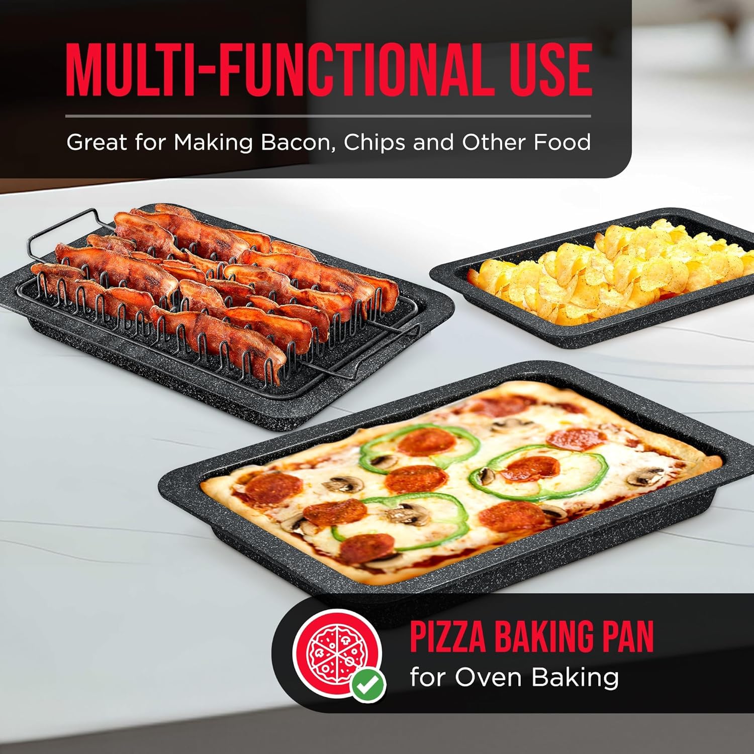 Bacon Tray - 2-Piece Set – Marble Coating - Durable, Non-Stick Cooking Tray for Bacon – Black Stone Tray and Carbon Steel Rack