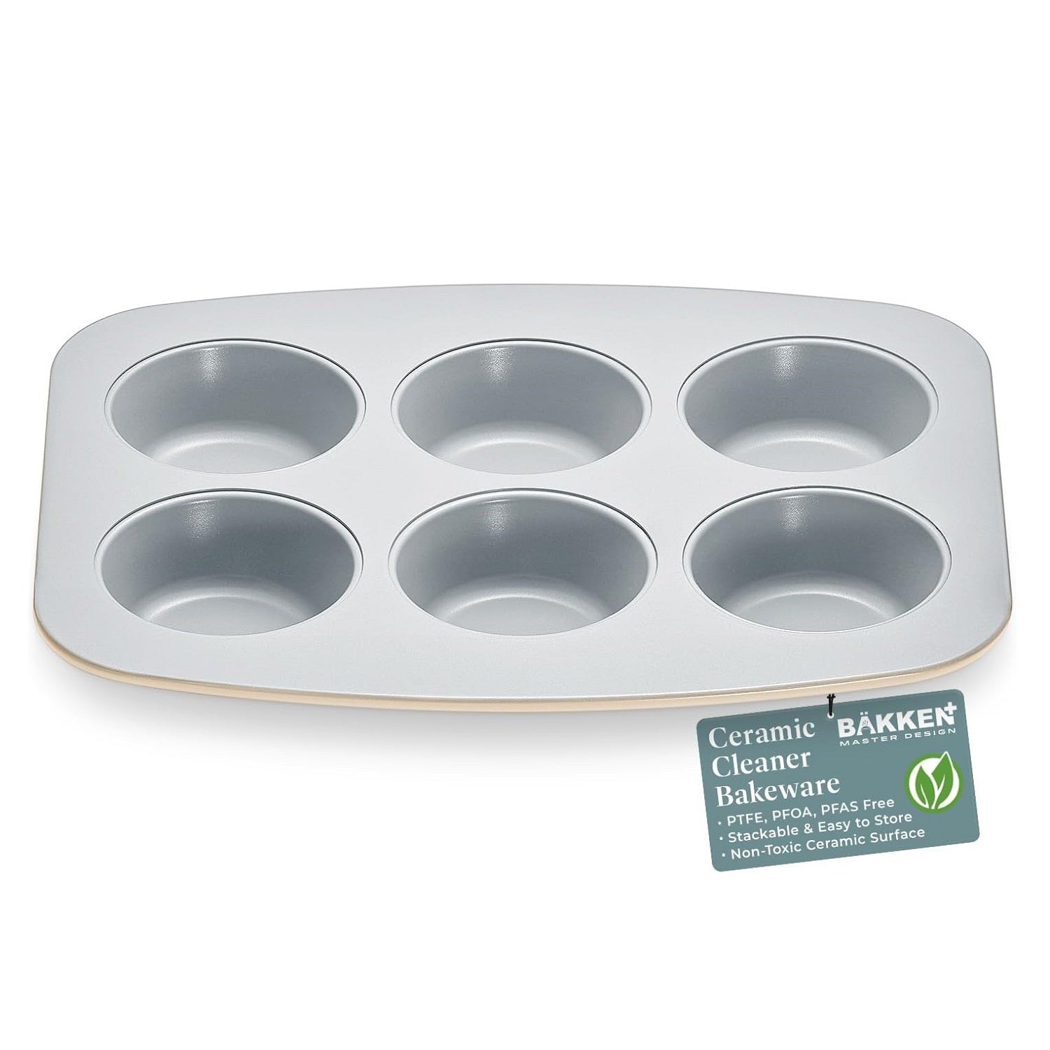 Elevate your baking experience with our 6-Cup Cake/Muffin Pan Set, featuring a stunning array of colors – Blue, Teal, Marble, Golden, Cream. Crafted from high-gauge aluminized steel, this bakeware ensures durability and even heat distribution for consistently delicious results. The premium ceramic non-stick coating, free from PFOA, PFAS, and PTFE, guarantees a healthy baking experience. Sized at 10.8x8.8 inches, it's versatile for cakes, muffins, and more, fitting standard ovens perfectly. With a stylish exterior and superior functionality, this pan set blends elegance with practicality, making it a must-have for your kitchen. Explore a new level of baking excellence today!