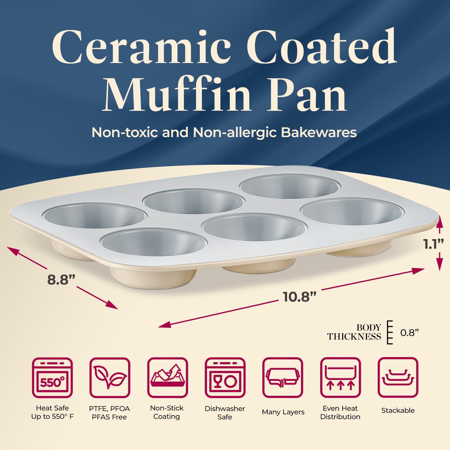 Bake with Elegance: 6-Cup Cake/Muffin Pan Set - Blue, Teal, Marble, Golden, Cream - Aluminized Steel with Ceramic Non-Stick Coating, PFOA & PFAS Free - Non-Toxic, Heavy-Duty Bakeware