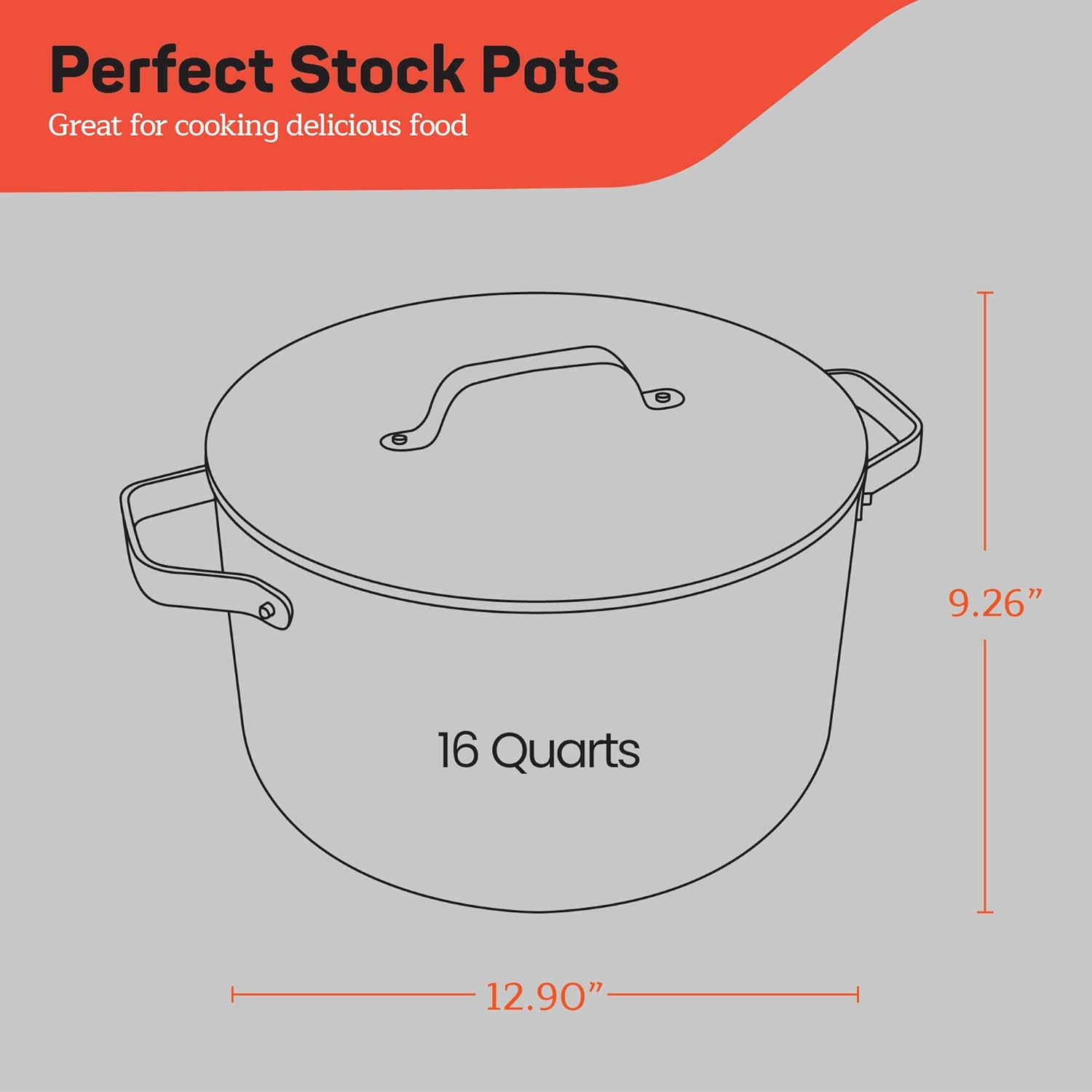 FOR EVERYDAY MEALS - With a generous 16-quart capacity and a lightweight yet sturdy design (just under 5.93 lbs. with lid), it’s the perfect 16 qt stock pot with lid for soups, sauces, and side dishes—ideal for everyday cooking or serving a cozy crowd.