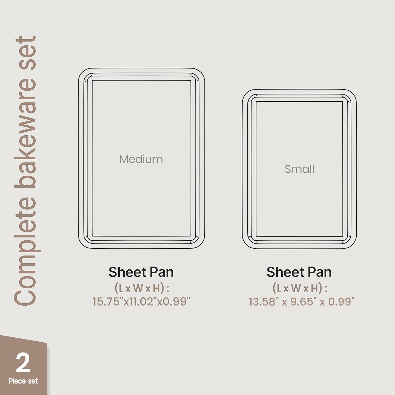 Diamond Bottom Cookie Sheet Set of 2, Nonstick Gold Carbon Steel Baking Pans for Crisp Baking, Space-Saving Stackable Trays, PFOA, PFOS, PTFE Free, Oven Safe Up to 450°F, Small & Medium Pans